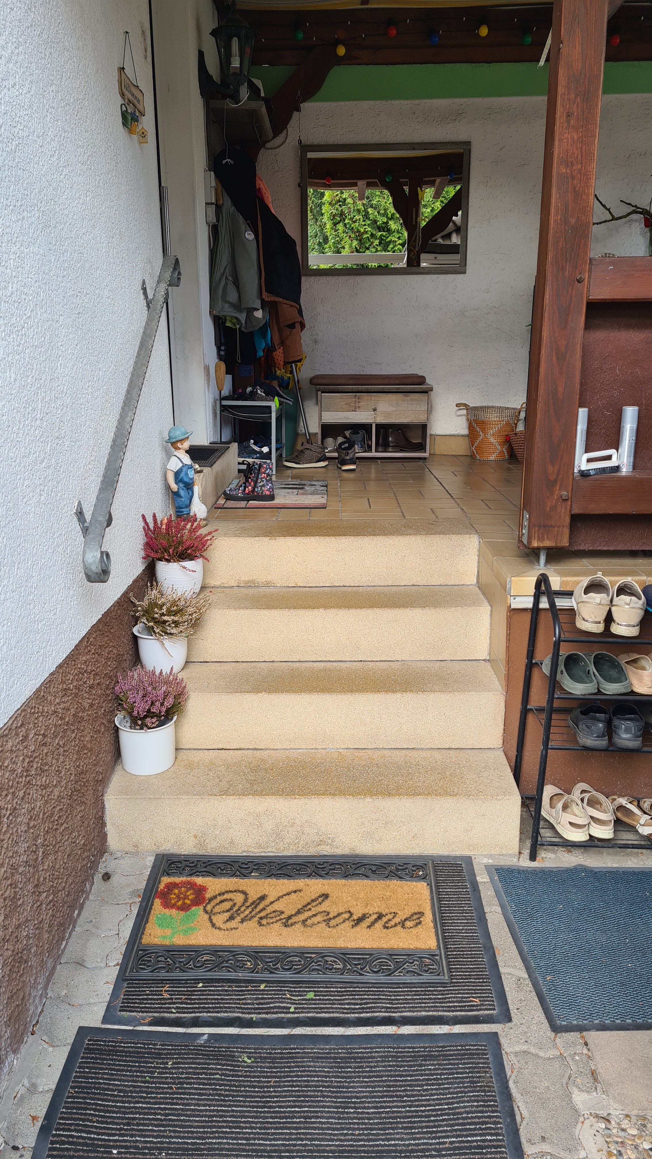 Das Haus ist ca. 10 m zurückversetzt, sodass eine schöne Spielwiese (innerhalb des Geländes / vor dem Haus) zur Verfügung steht.